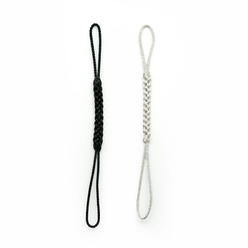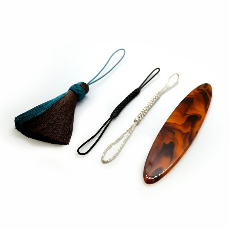 2色の根付紐をお好みの帯留めや小物に合わせて通し、根付としてお使いいただけます。
