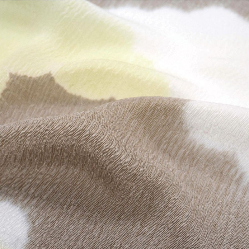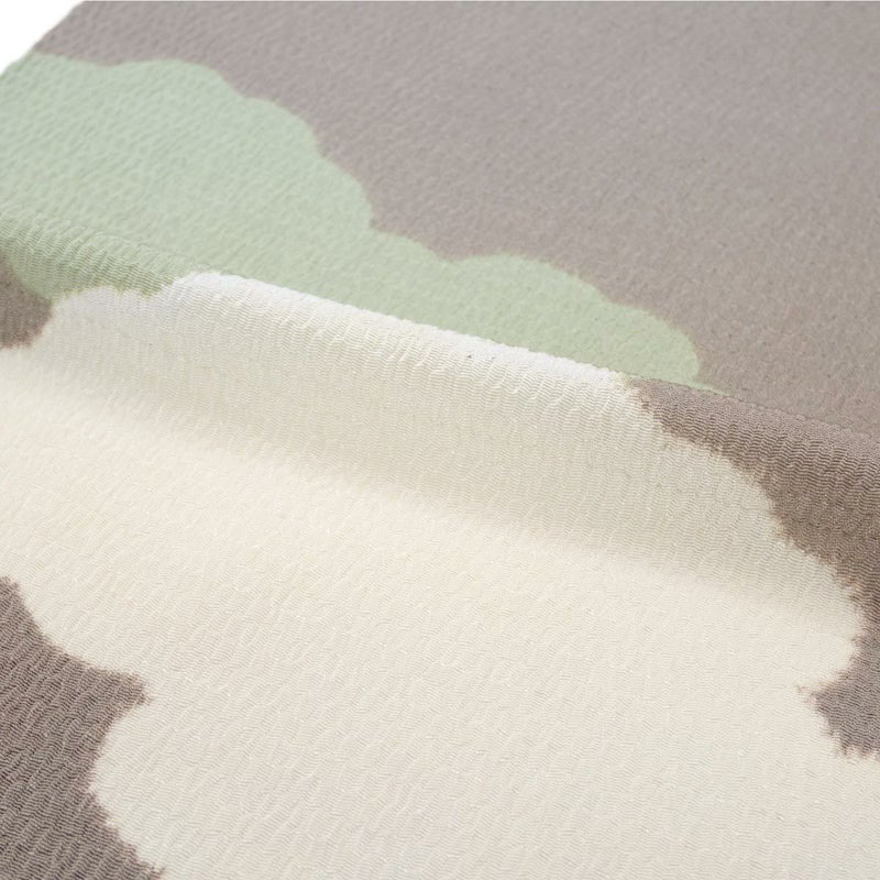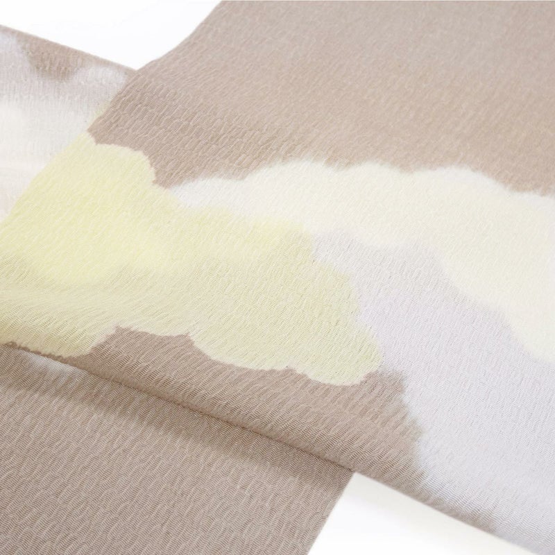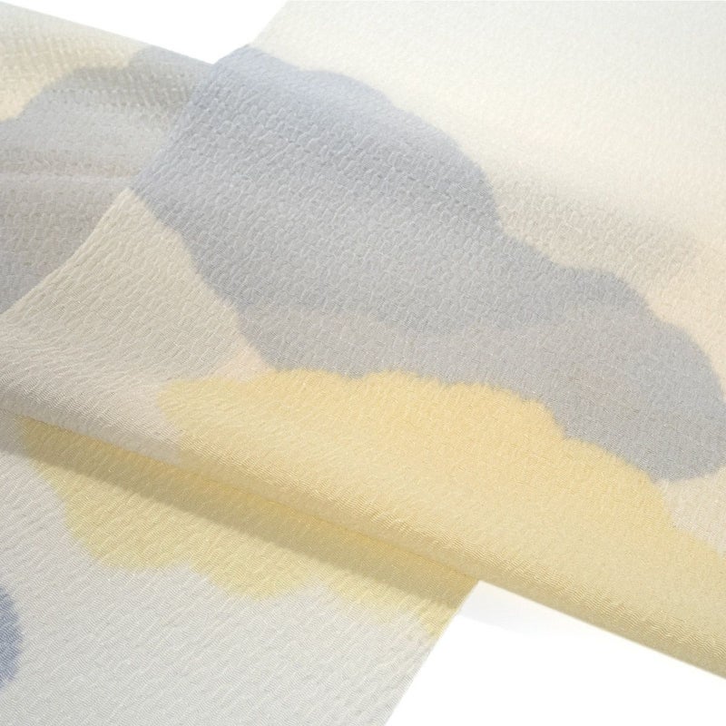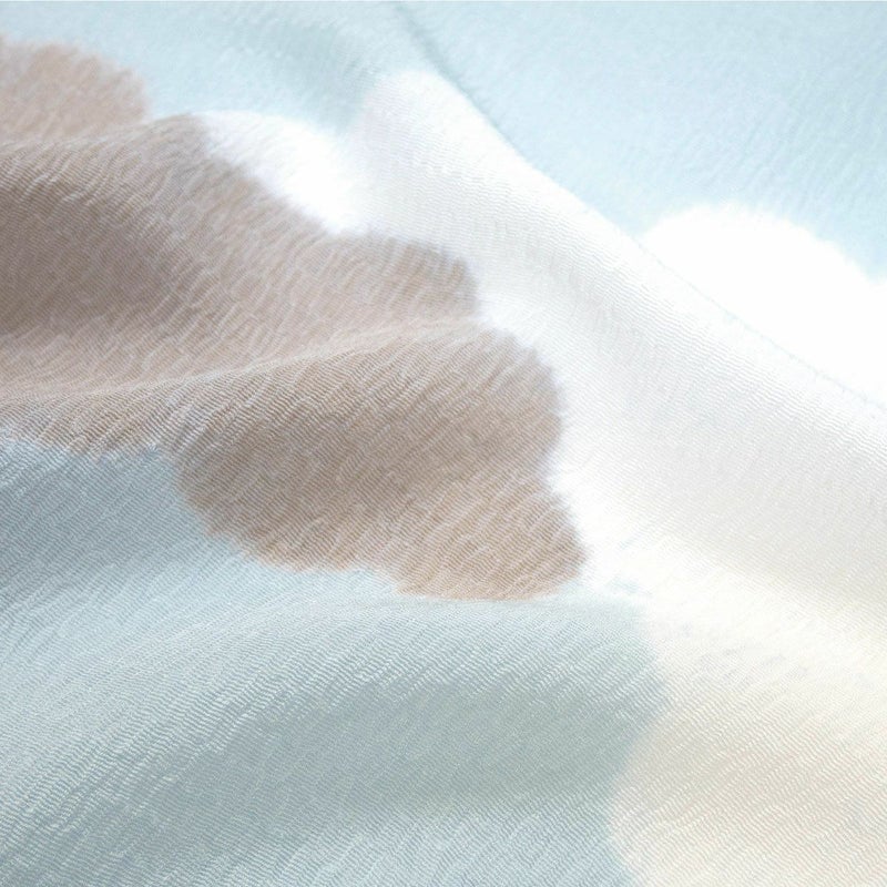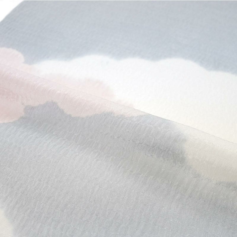 柔らかな空の情景を思わせる、雲の柄が美しい絞りの帯揚げです。 シボが大きくふっくらとした『うずらちりめん』の帯揚げ地を、縫い締め絞りによって染め分けて雲の文様を表しています。 一点一点異なる表情をもち、絞りならではの優しい色のにじみと柔らかな雰囲気が魅力。 お出掛けから晴れの日の装いまで、繊細な技が生み出す豊かな表情が、装いに格別な深みを添えてくれます。