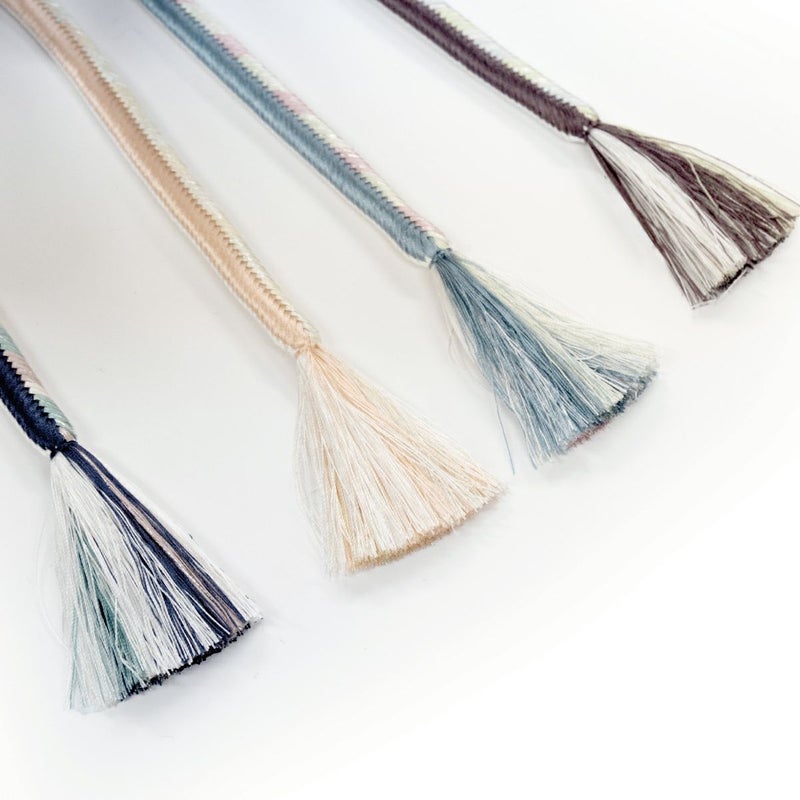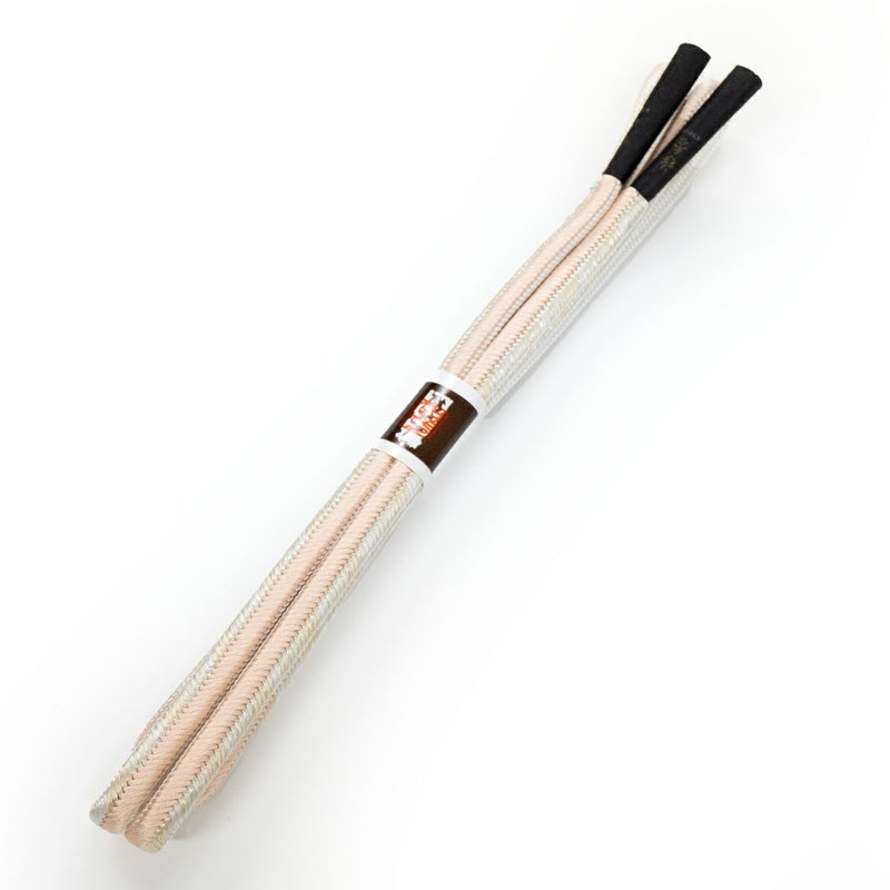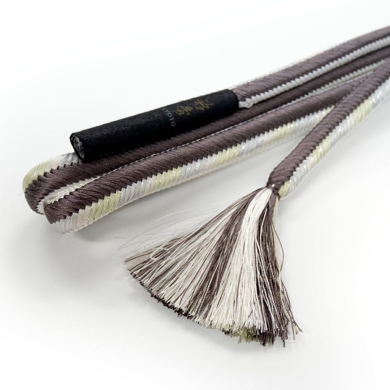 銀糸はごく控えめに使い、絹の艶で光沢感を表現した上品な帯締めです。