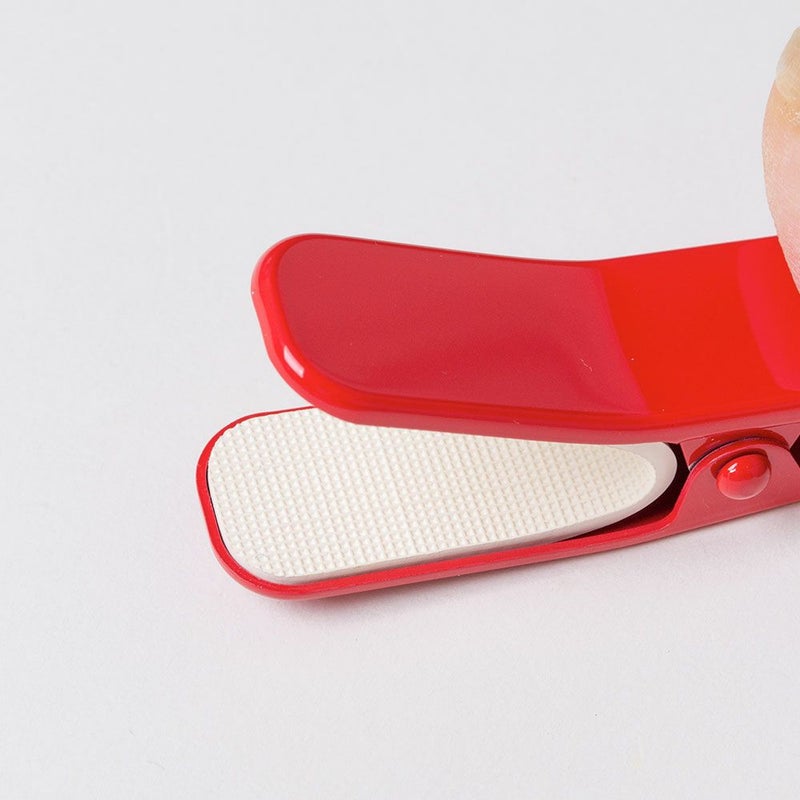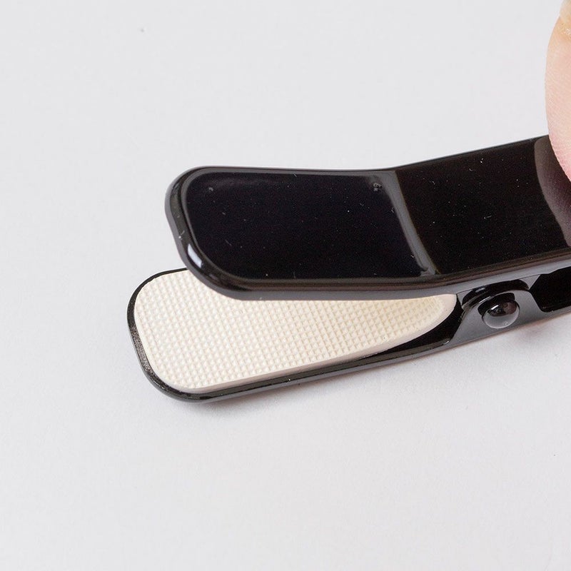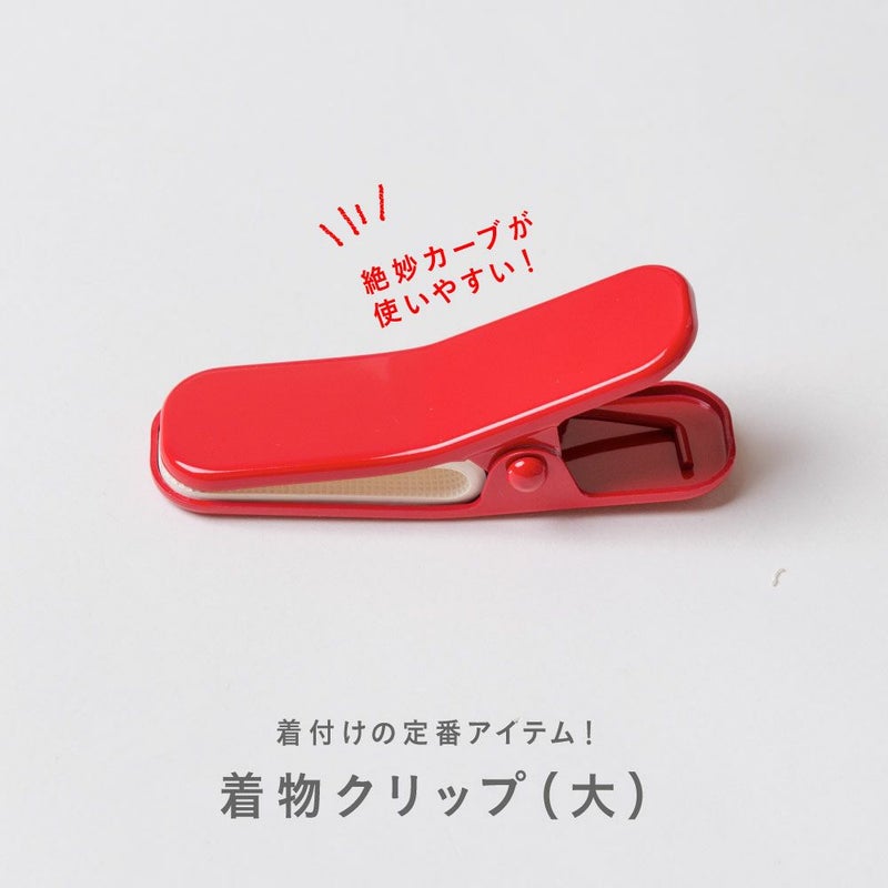着付けの際にあると便利な着物クリップです。帯もしっかり留められる大きめサイズ(バラ売り1個) 着付けの際に、背中心で長襦袢と着物の衿がずれないように留めておき、綺麗な衿元に仕上げます。程よいカーブが衿をしっかりホールドします。 クリップの先はゴムでカバーしてありますので、大切な着物や帯の生地を傷めません。 大きめサイズは、帯結びの仮止めなど、帯3枚分の重なりもしっかり留められます。仮止めをすると両手が使えるので、着付けがスムーズになります。着物初心者さんには特におすすめのアイテムです! ありそうでなかった、無地のシンプルカラーです。