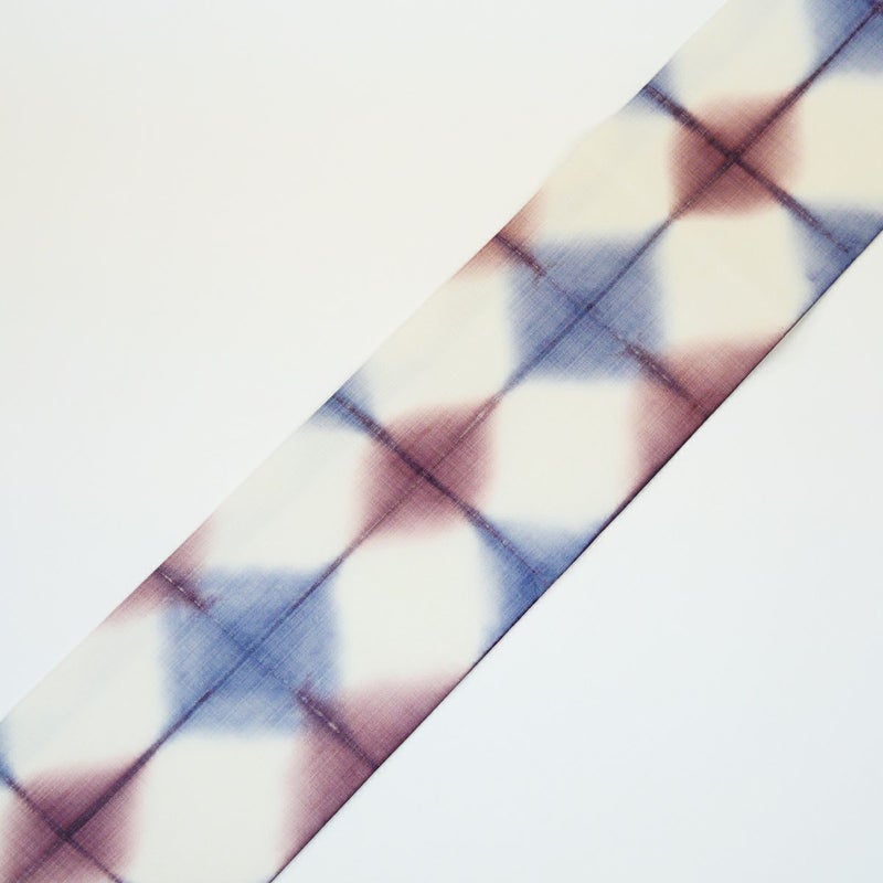 大胆な菱形の格子模様がモダンな雰囲気を醸し出し、繊細で色鮮やかな染めが目を惹きます。