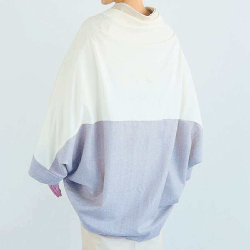 ファッションデザイナーとコラボして制作したオリジナルデザイン。身頃の半分で異なる生地を使用することで、上下を逆さまにして雰囲気の異なる2WAYの着こなしを楽しめます。