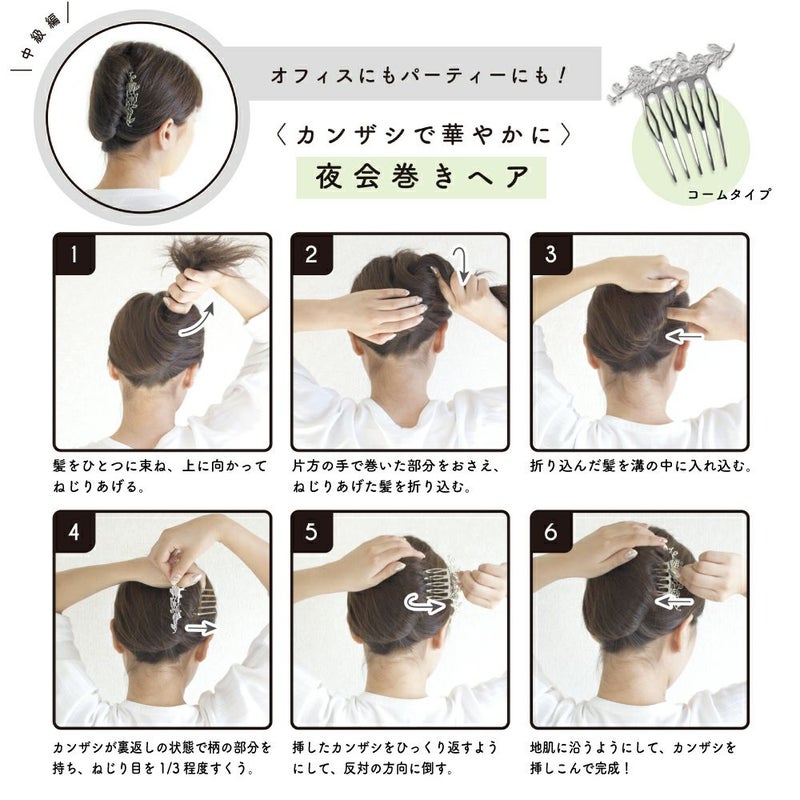 ヘアピンを大量に使わなくても、これ1本もしくはヘアゴムがあれば、夜会巻やシニヨンなどの様々なまとめ髪が簡単に作れます。