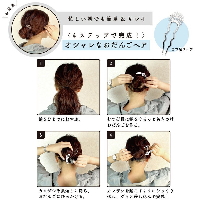 ヘアピンを大量に使わなくても、これ1本もしくはヘアゴムがあれば、夜会巻やシニヨンなどの様々なまとめ髪が簡単に作れます。