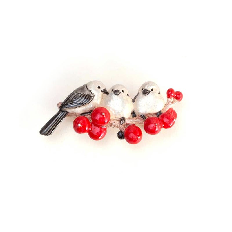 雪景色の中でほっこりとするようなワンシーンを切り取ったアイテムです。シマエナガたちが南天の枝にとまり、楽しそうにお喋りをしているようです。