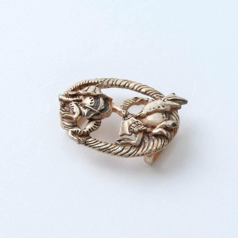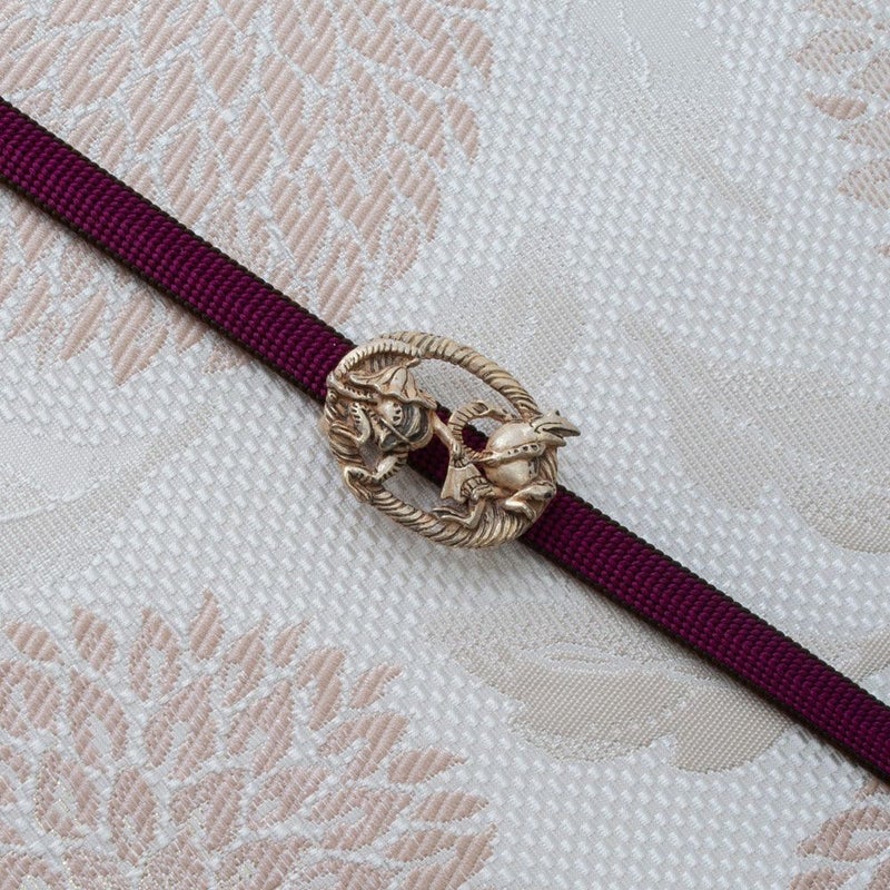日本最古の漫画として有名な平安・鎌倉時代の紙本墨画の絵巻物「鳥獣戯画」に登場するうさぎと蛙が、躍動感溢れる造形で帯留めとなりました。