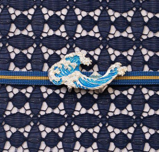 葛飾北斎の「富嶽三十六景」の1図、「神奈川沖浪裏」をを再現した帯留めです。