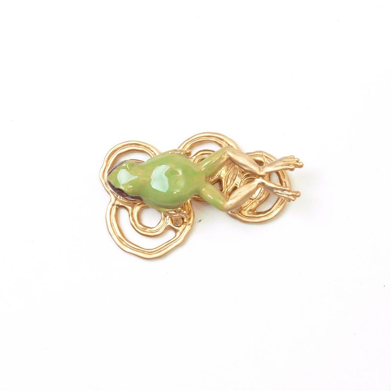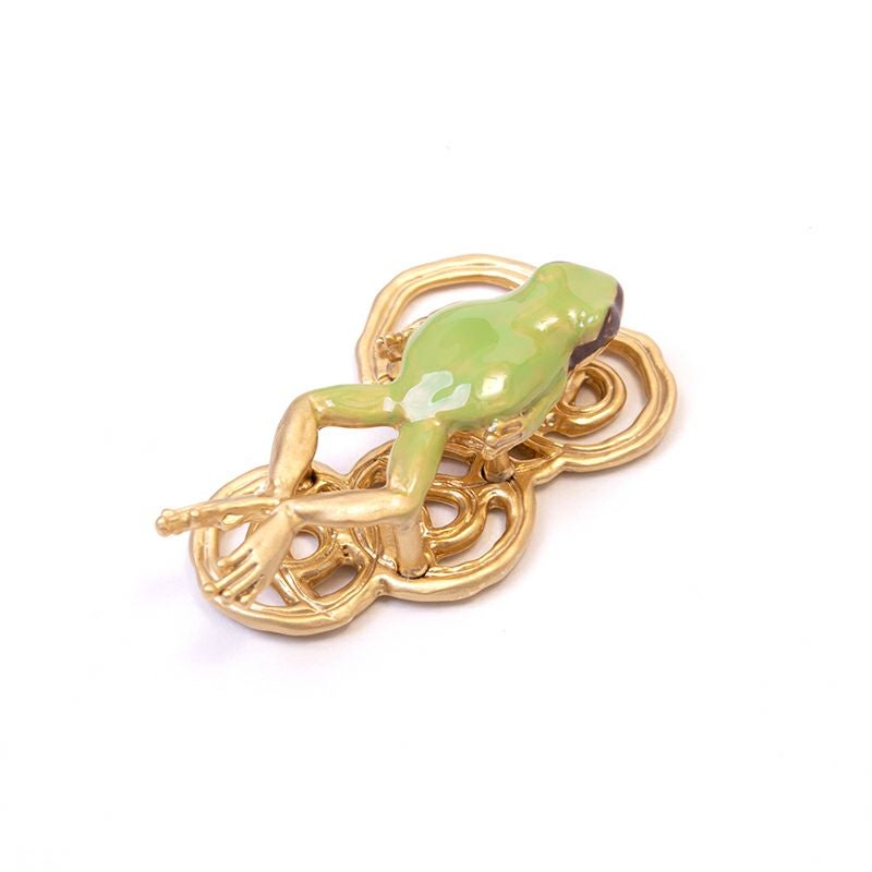 水の中を気持ちよさそうに泳ぐアマガエルの帯留めです。