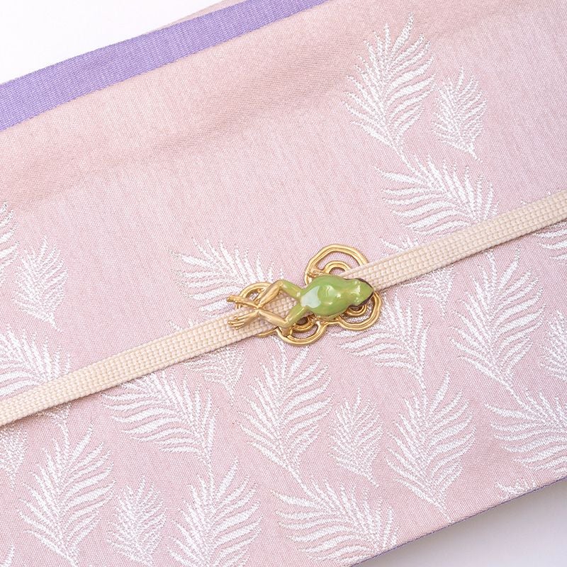 カエルと波紋の間に帯締めを通す立体的な造りとなっており、まるでカエルが浮いているかのよう♪