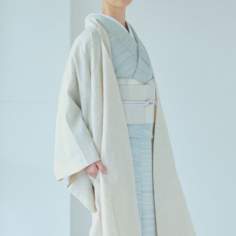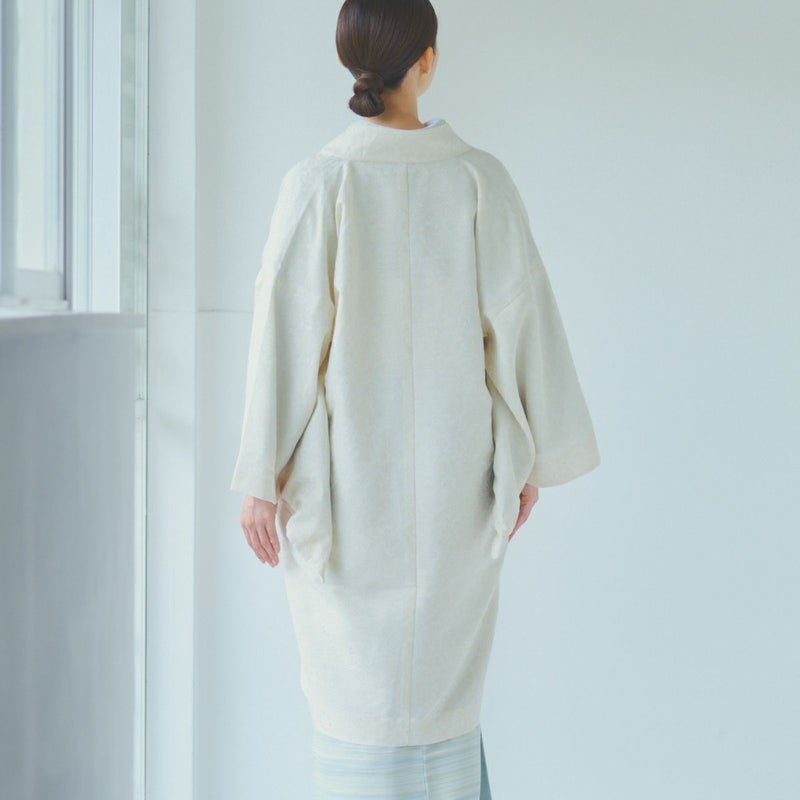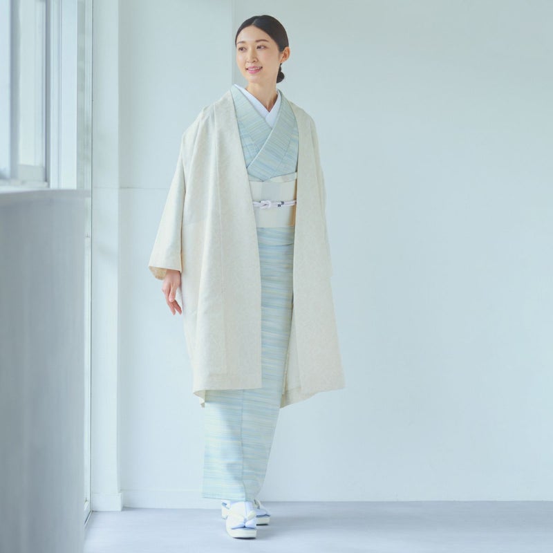 単衣仕立てで軽く、暑い時期にも雨除けとして着やすく、冬場は羽織ものの上に重ねて着ることができます。