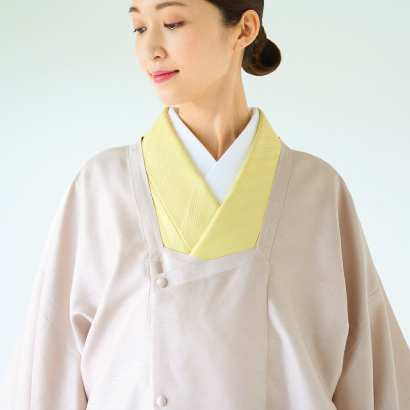 袖振りの内側に小さなくるみスナップがあり、袖丈が合わない着物の袖の飛び出しが防げます。