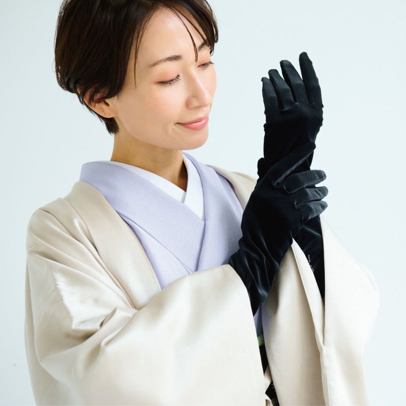 着物は袖口が広く開いているので、寒い日は手先から冷えてしまいがち。ロンググローブがあれば、冬場のお出かけの悩みも解決!