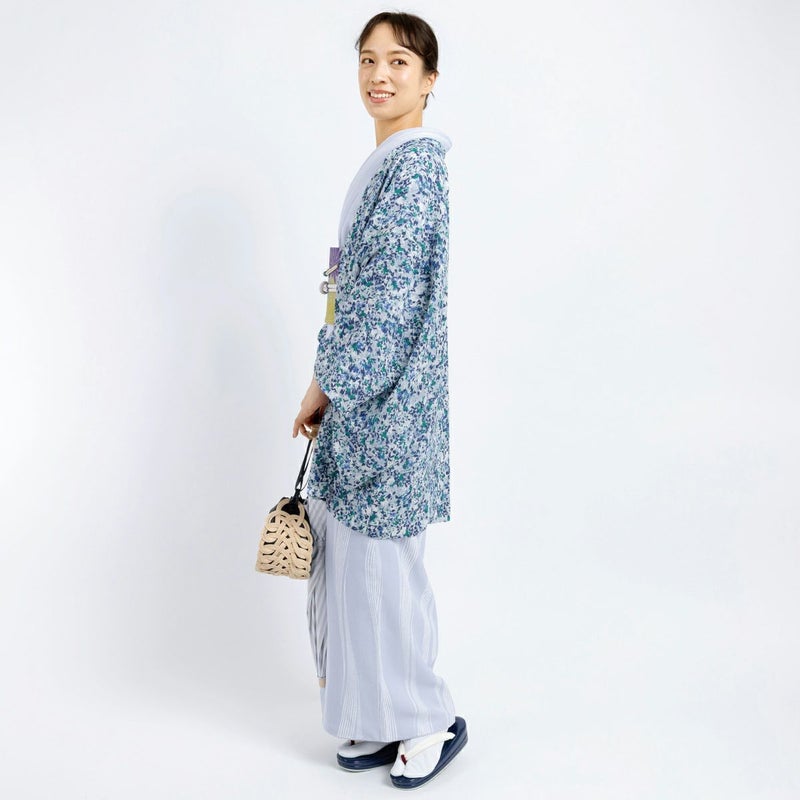 無地系の着物はもちろん、柄もの同士のコーディネートもぜひ楽しんでいただきたい羽織です。