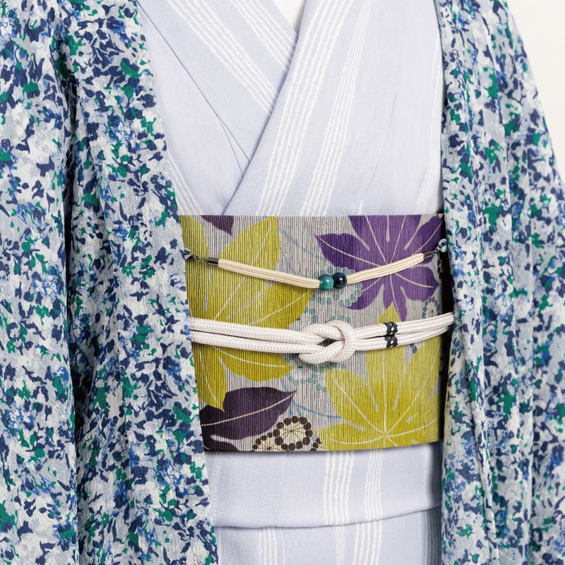 取り外し可能な、共生地の羽織紐が付いています。