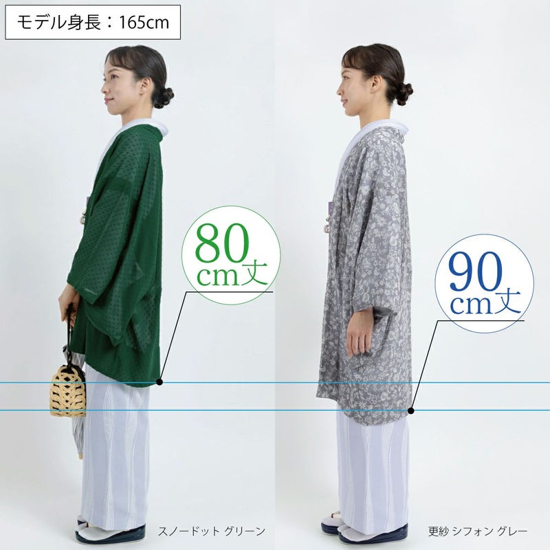 少し短めの80cm丈で、着姿が軽やかな印象に。小柄な方にもおすすめです。