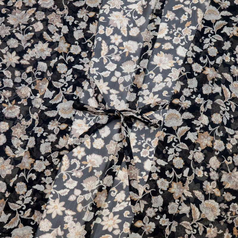 【洗える薄羽織 更紗 シフォン ブラック】は、つい着ているのを忘れてしまうくらいの超軽量。