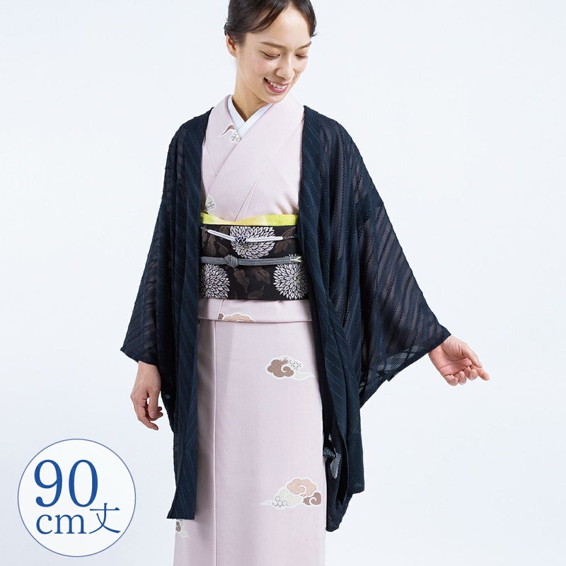 【洗える薄羽織 シフォンジャガード ストライプ ネイビー】は、つい着ているのを忘れてしまうくらいの超軽量。