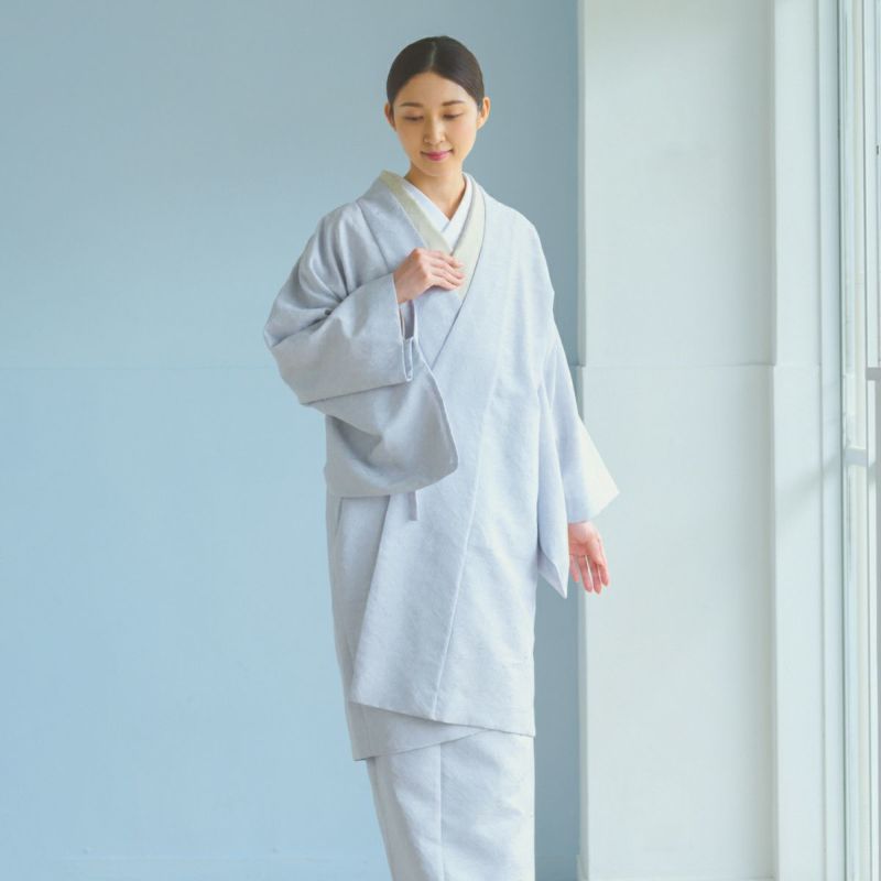 道中着【更紗】だけでなく、お持ちの道行や道中着、着物コートと組み合わせてご着用いただくこともできます。