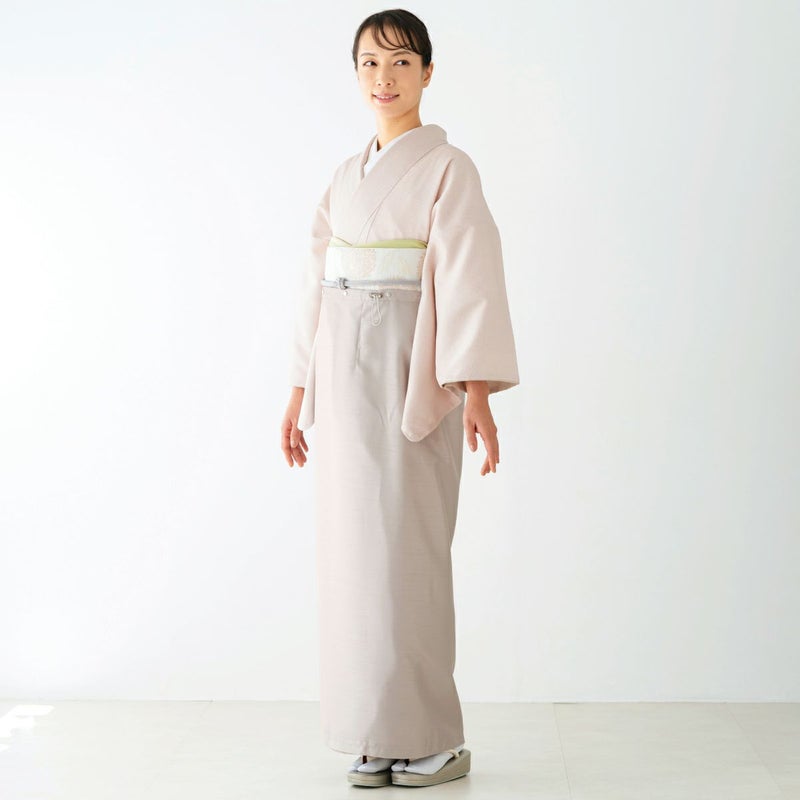 少し光沢のあるピンクみの淡いベージュは、どんな色柄の着物とも相性抜群。