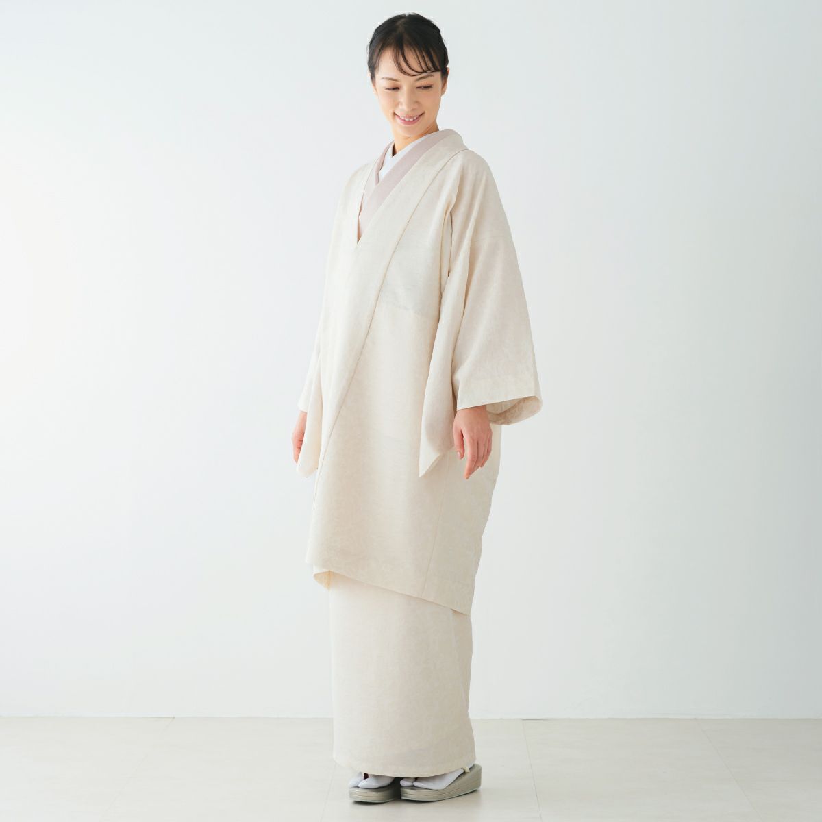 真っ白すぎない、やや落ち着いたオフホワイトは、どんな色柄の着物とも相性抜群。
