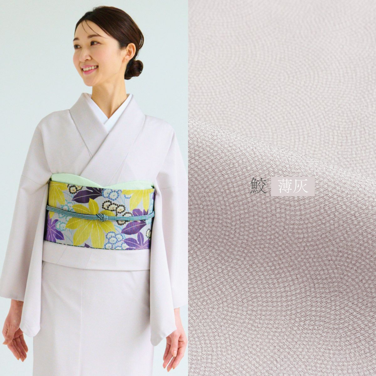 江戸小紋の定番柄「鮫」をスタイリッシュなカラーで染めた、大人のための上質な洗える着物です。