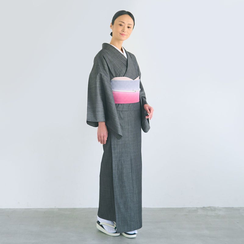 洋服でもデニムに合わない色や柄がないように、どんな帯でも、小物合わせでも、自由自在に楽しめるのがデニム着物の魅力。