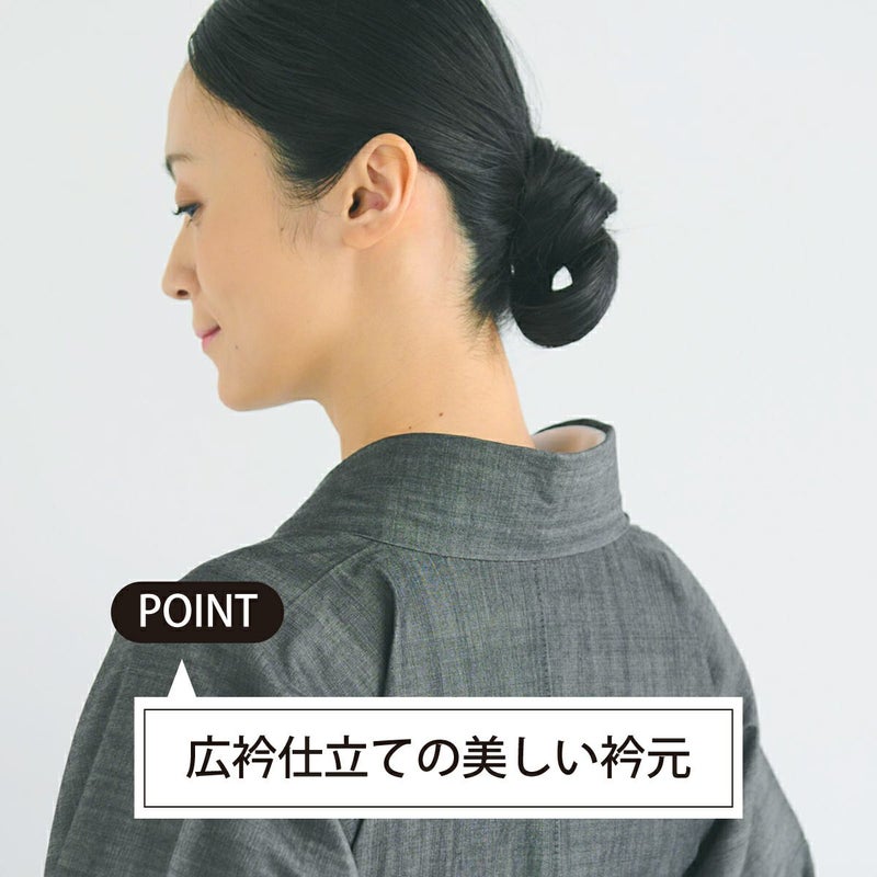 デニム着物に多いバチ衿仕立てではなく、広衿にしたこともこだわりの一つです。