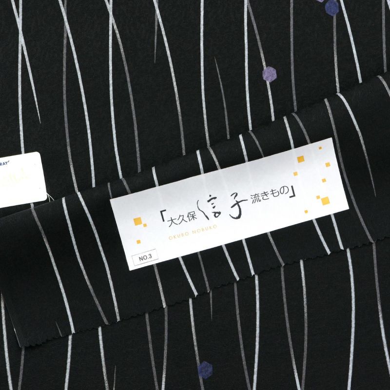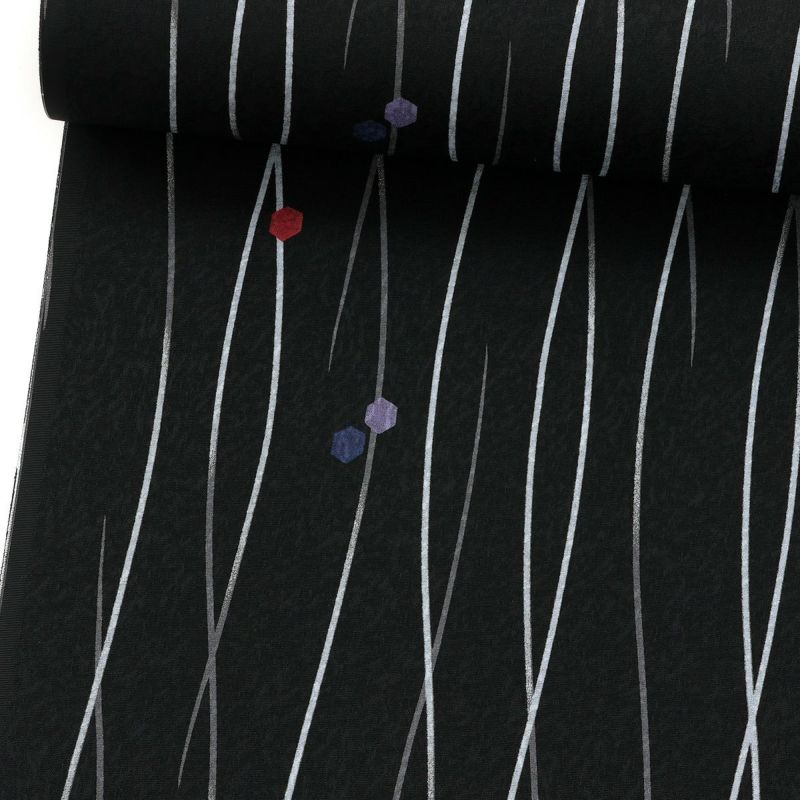 黒地によろけ縞と六角形のドットがモダンな小紋。