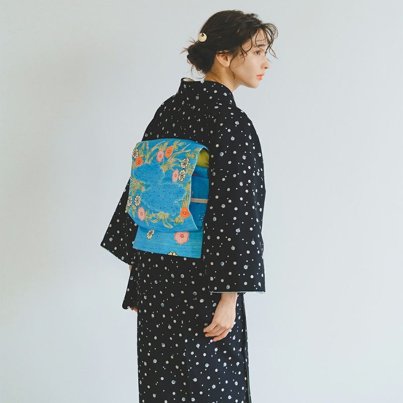 シンプルながらも躍動感のあるデザインで、無地系の帯から柄ものの帯までコーディネートしやすく仕上がりました。