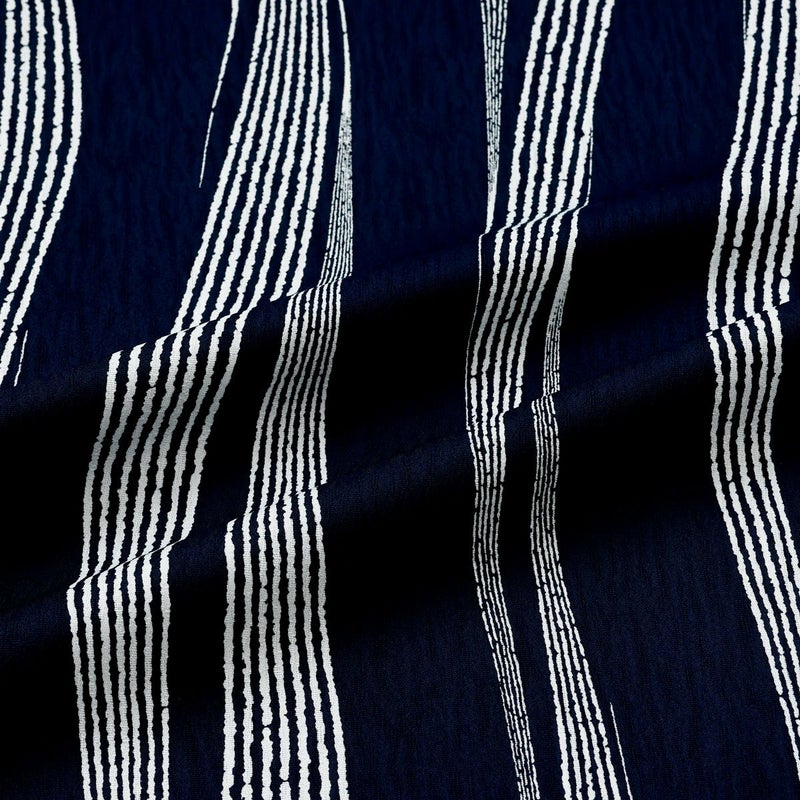 アンティークな雰囲気のよろけ縞は着映えする一枚。大胆なデザインながら、ゆらぎのある細い線を重ねるように描かれているので、柔らかく繊細な印象で派手になりすぎません。