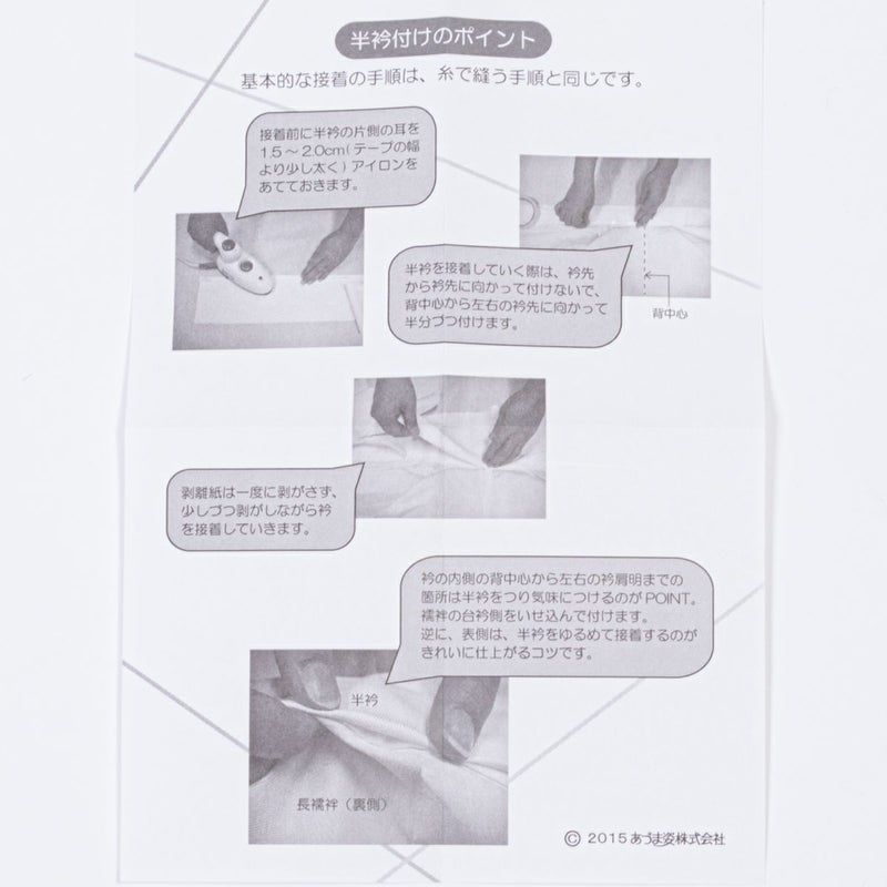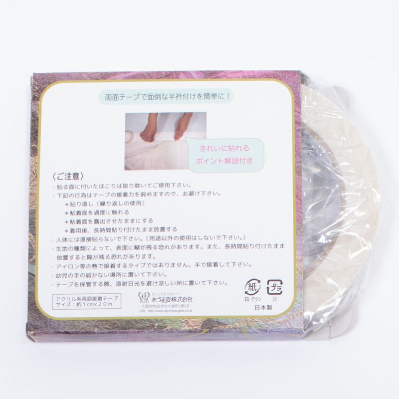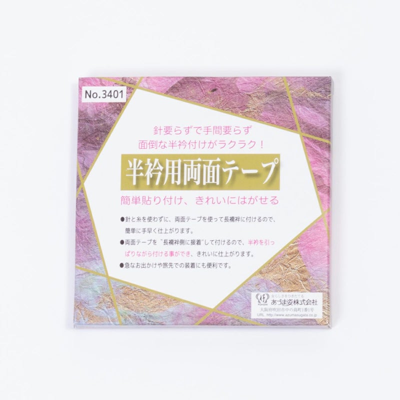 半衿のおしゃれを楽しみたいけど、半衿付けが面倒、、そんな方に朗報です! 針を使わず、両面テープを長襦袢側に付けて、半衿をピタッと接着する半衿用両面テープ。これさえあれば半衿付けがラクラク♪ コーデに合わせて、その日の気分に合わせて、半衿のおしゃれを気軽にお楽しみください!