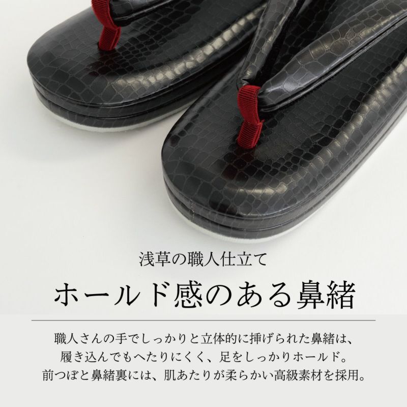• 底を接着剤で貼り合わせているため、鼻緒の調整や挿げ替え、底の貼り替えができません。予めご了承ください。