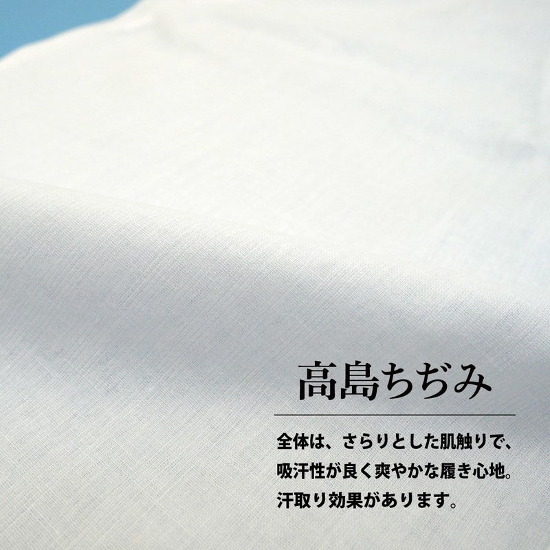 汗取り効果のある高島ちぢみを使用、さらりとした肌触りで吸汗性が良く爽やかな履き心地♪