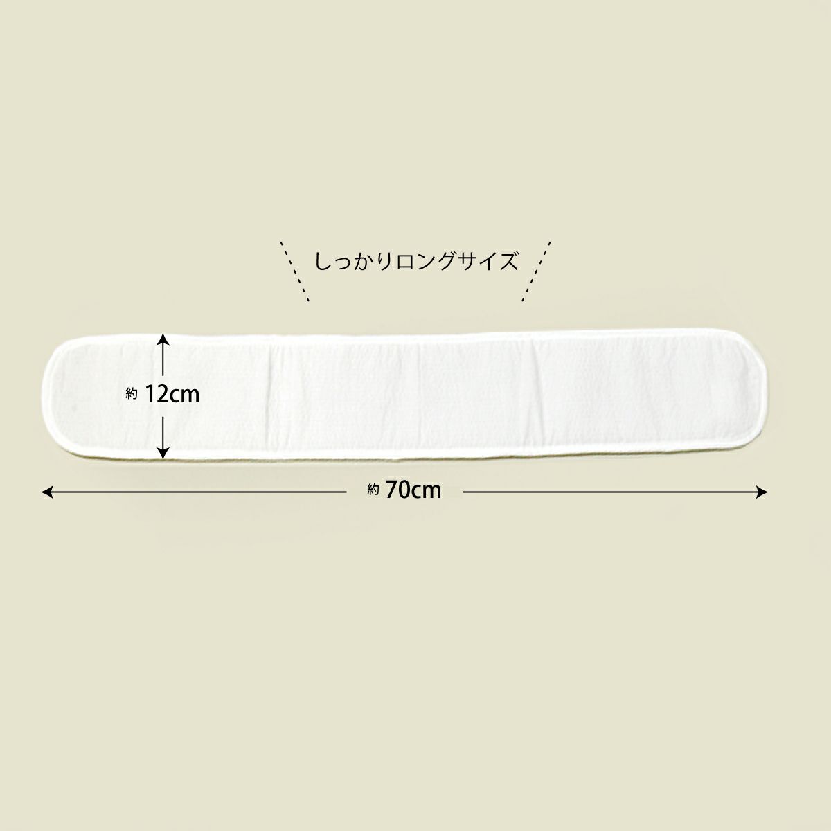 およそ70cmのロングサイズで、ウエストまわりをまとめて補整。 両方の端を折り曲げ、ウエストのくびれ部分の補整を厚くすることもできます。