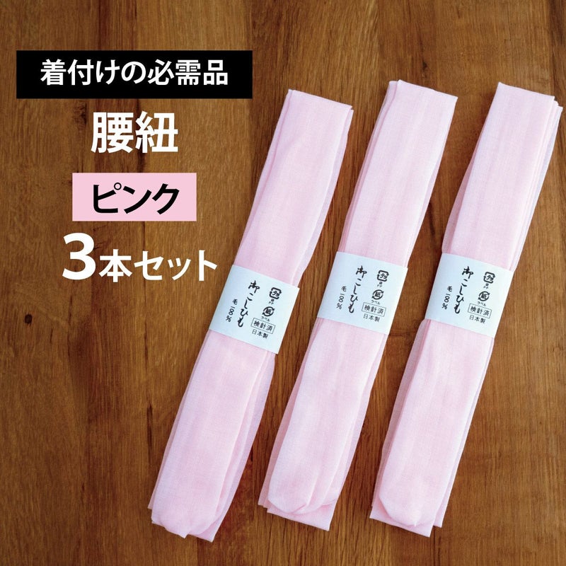 【着付けの必需品】モスリン腰紐〈ピンク・3本セット〉