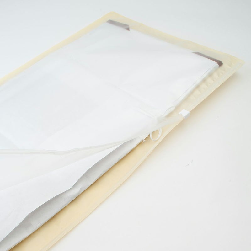 シーズンオフになったお着物の保管には「きものキーパー」での保存がお薦めです。 たとう紙に包んで、キーパーの袋に入れてファスナーを締めるだけでOK! 一袋に付き、着物なら2〜3枚程度が収納可能です。