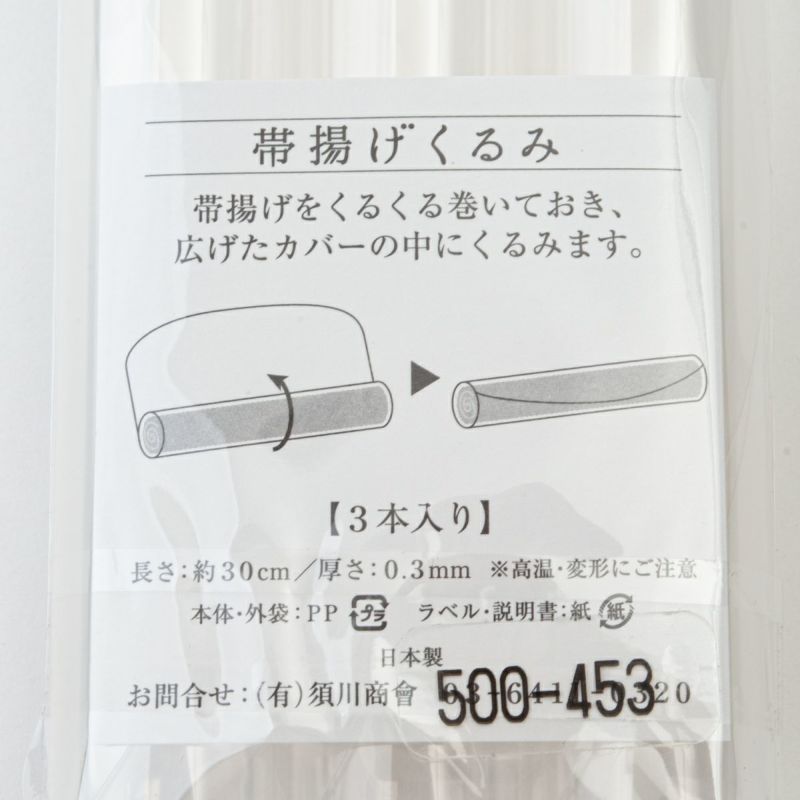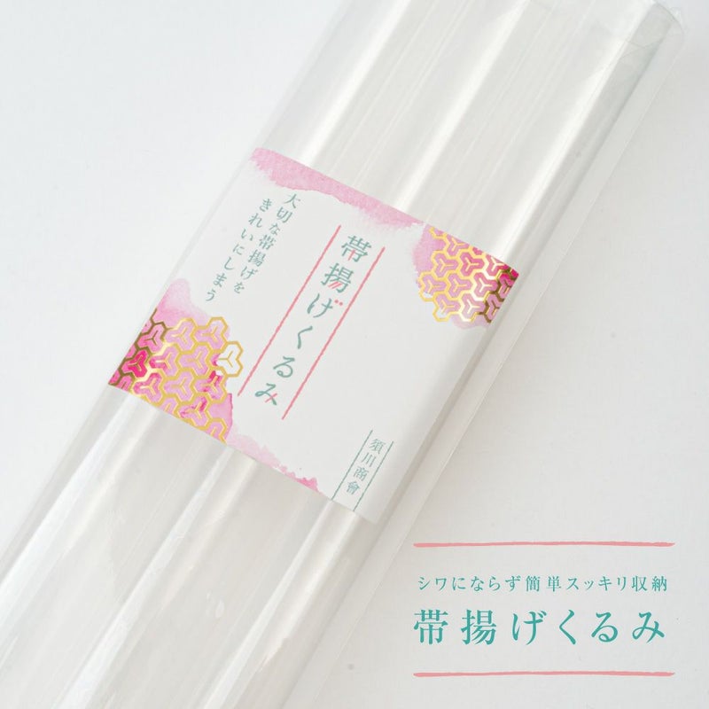 引き出しの中でグチャッとなりがちな帯揚げを、ロール状に巻いて収納カバーに入れるだけ!帯揚げを傷めず保管できるだけでなく、小スペースで保管できます。