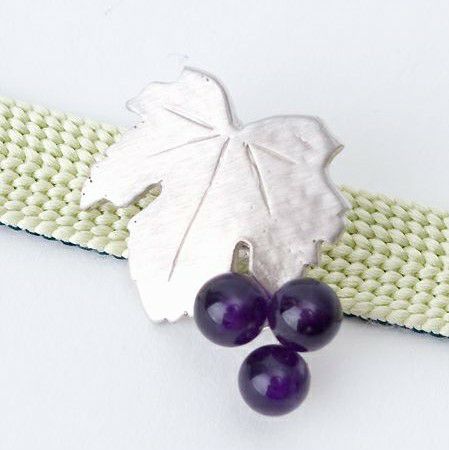 アメジストを実らせた「葡萄」の帯留で秋コーデのワンポイントに。