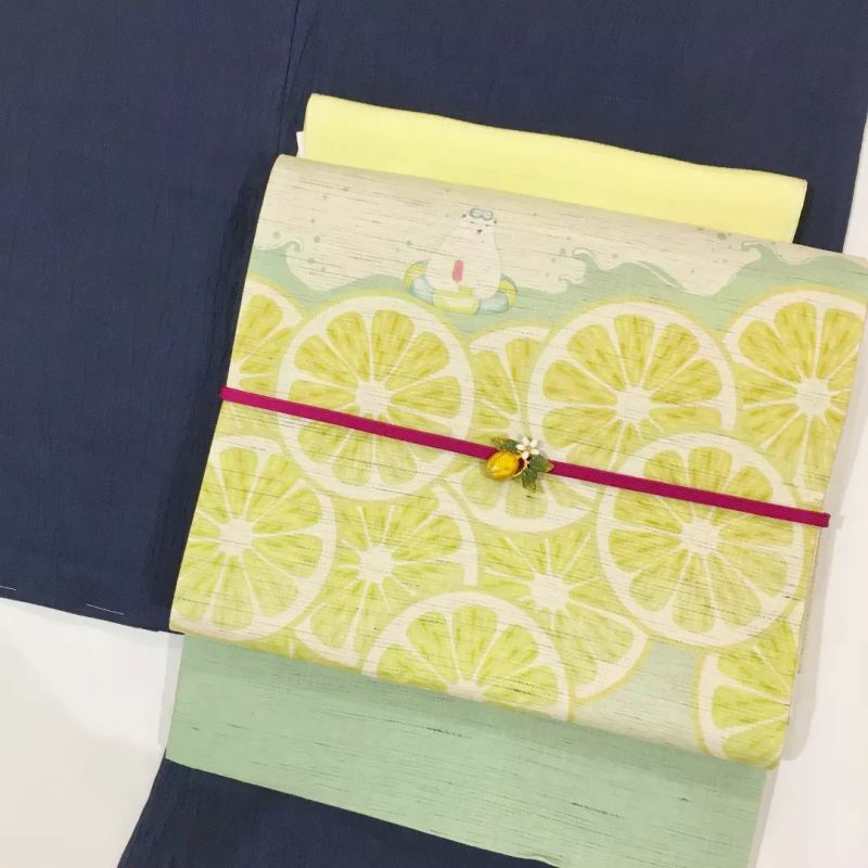 見ているだけで口の中が酸っぱくなりそうな、みずみずしいレモンの帯留めです。