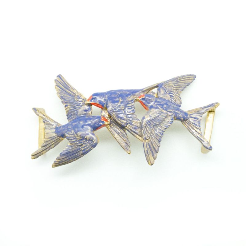 尾羽が金具と一体になっており、帯からふわりと浮かんで見えるユニークなつくり。本当に飛んでいるような軽やかさに、心も弾みます。