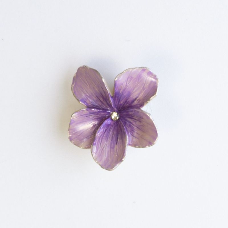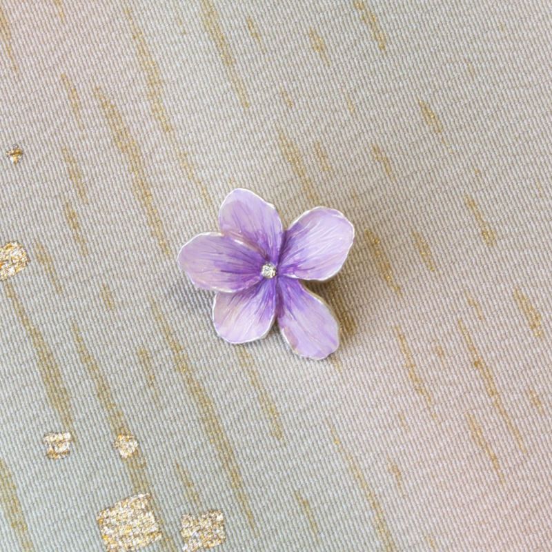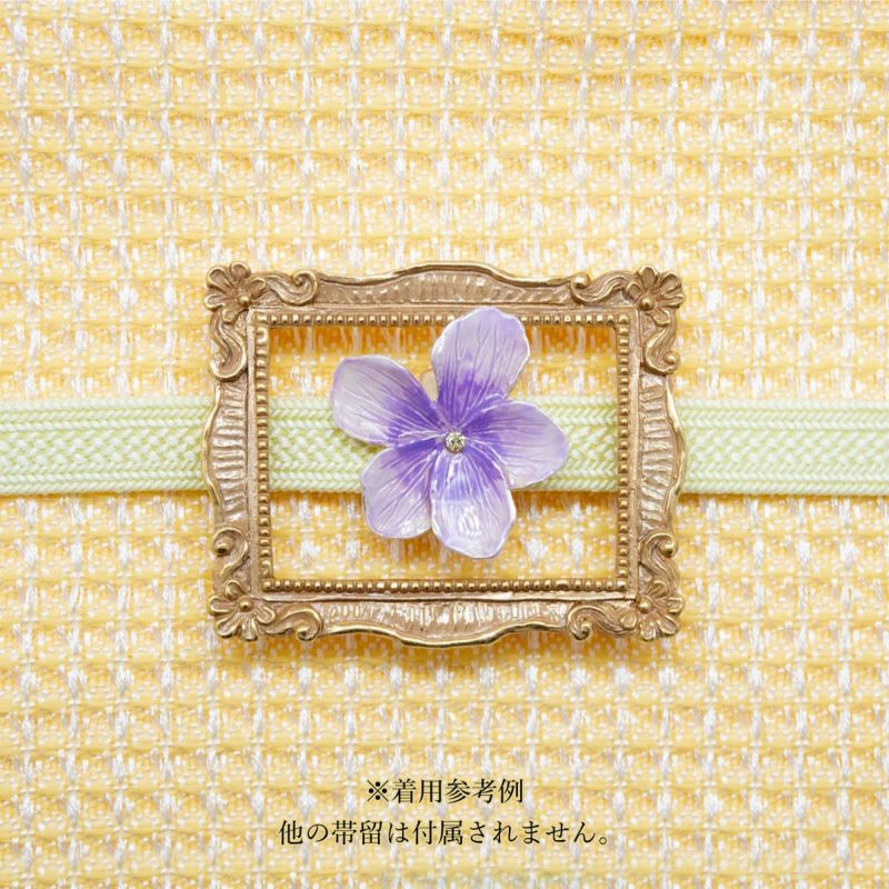 細部まで繊細に表現されたスミレ、美しい藤色に目を奪われる帯留めです。
