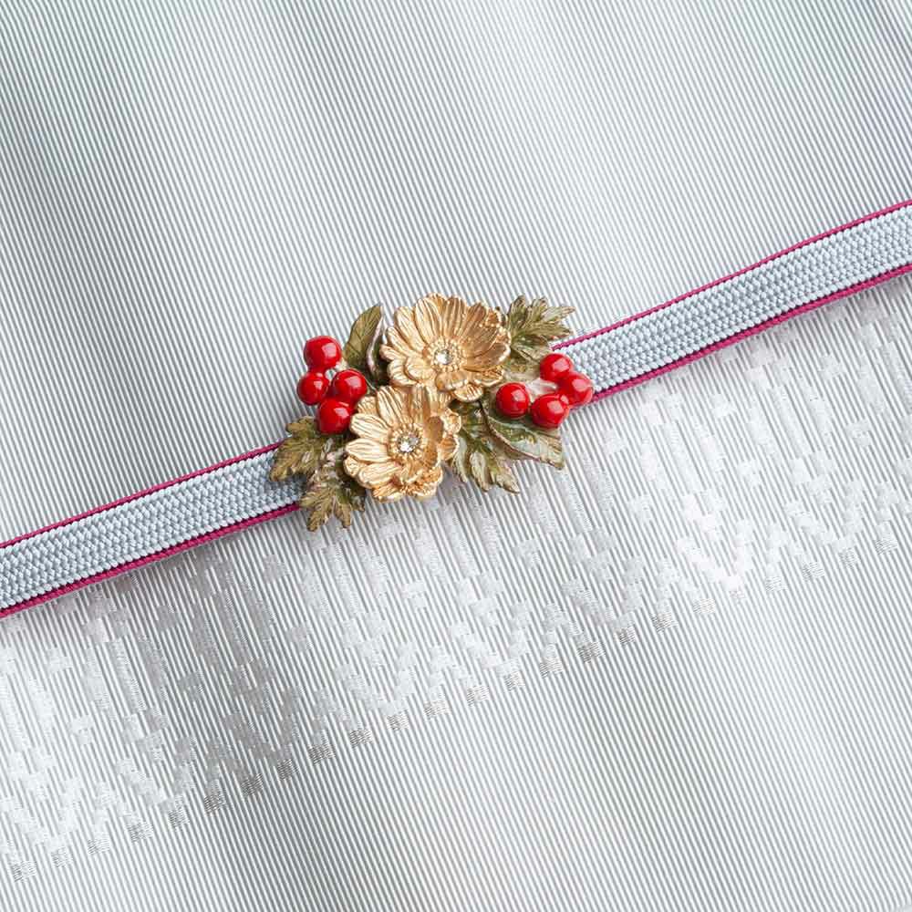 帯揚げや帯締めなどの帯まわりの小物、足袋や草履などの足元の小物、そしてバッグや帯留め、髪飾りなど。