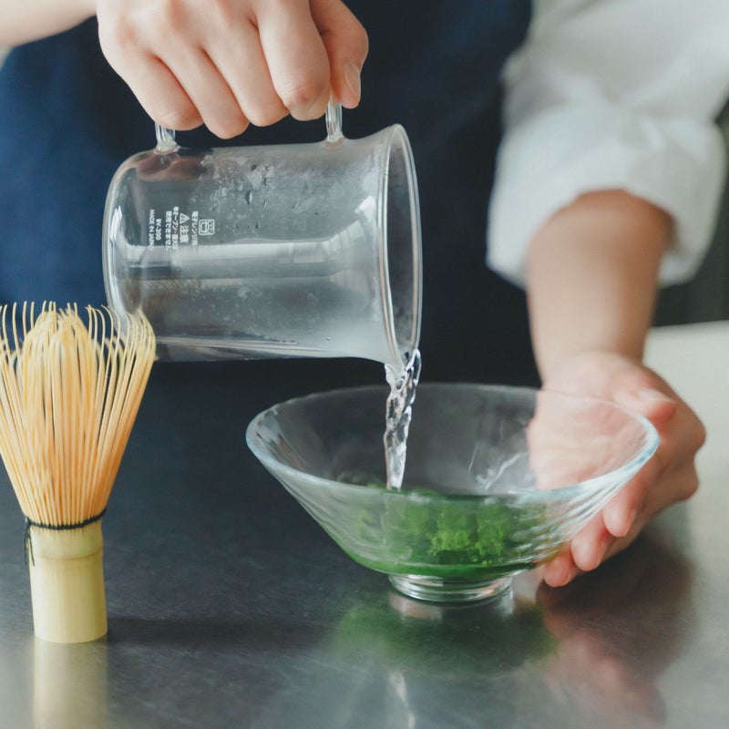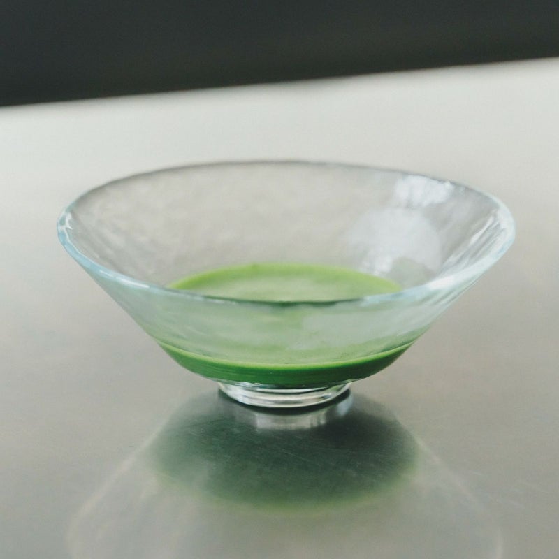 透明感の美しいガラスの抹茶碗は、ご自宅のキッチンやダイニングテーブルでお洒落に抹茶ライフが楽しめます。