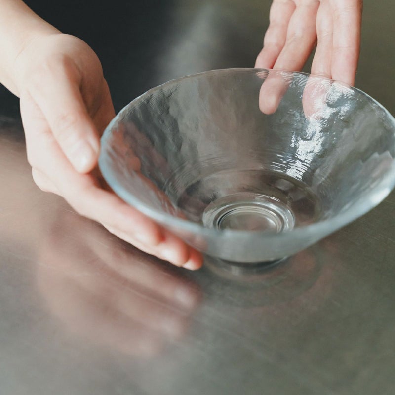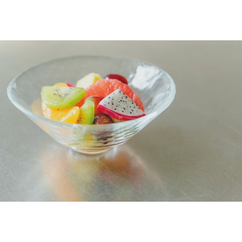 抹茶碗としてだけではなく、果物や冷たいお料理も映え、クリアなガラスと槌目模様が涼しげな印象を与えてくれます。