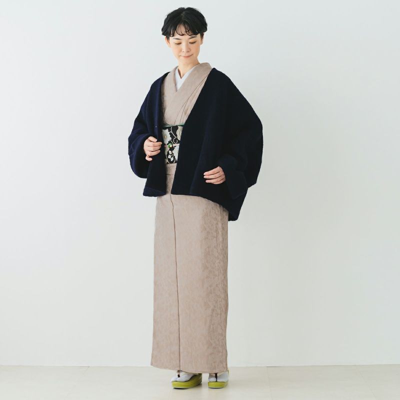 身幅をたっぷり取ったゆったりシルエットで、着物の袖や帯結びもふんわりと収めてくれます。
