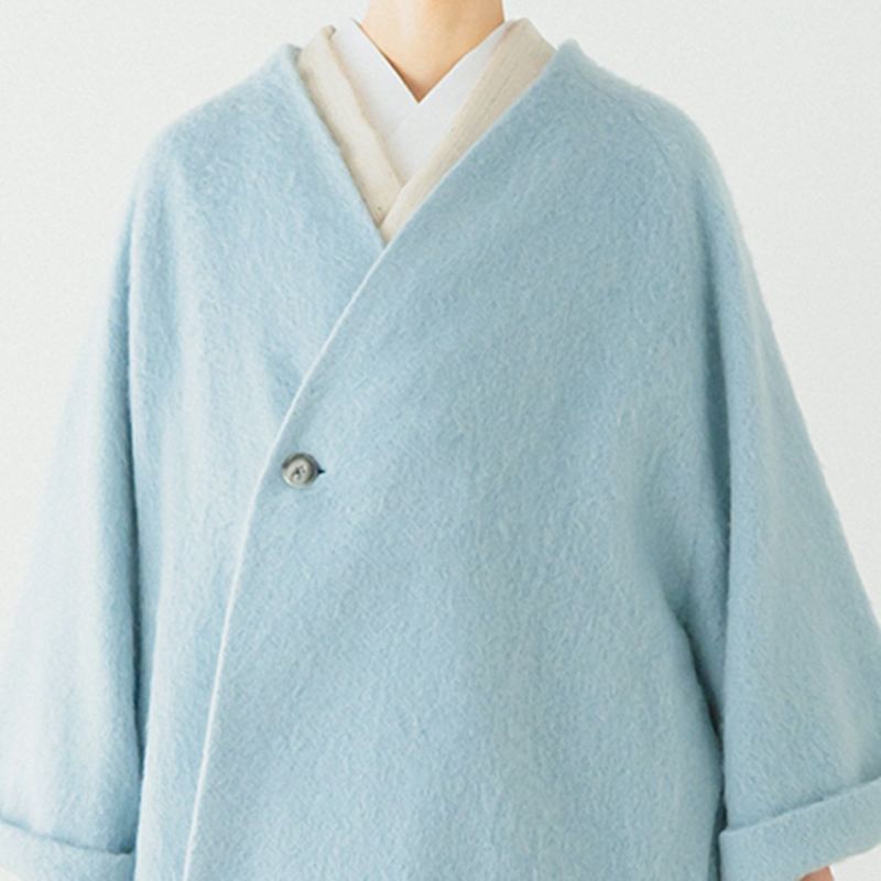【CHIKUMO-千雲-】オリジナルデザインの【モヘアシャギーロングコート】は、着物にも洋服にもさらりと羽織れるデザイン。