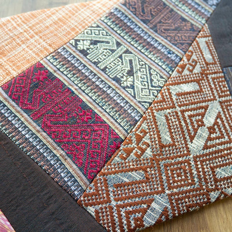 A・F/カンボジア草木染め手織り絹 B・E/ラオス草木染め手織り絹 C/カンボジア草木染め手織り絹絣 D・G/ラオス草木染め手織り絹浮き織 裏面/ラオス草木染め手織り絹