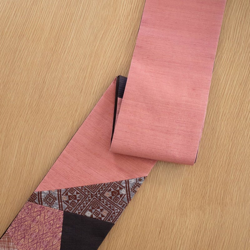 優しい手織りの風合い、草木染の色合いはどんな色の着物とも相性が良く、カジュアルでありながらも、おでかけできる美しい半幅帯です。