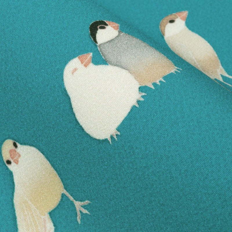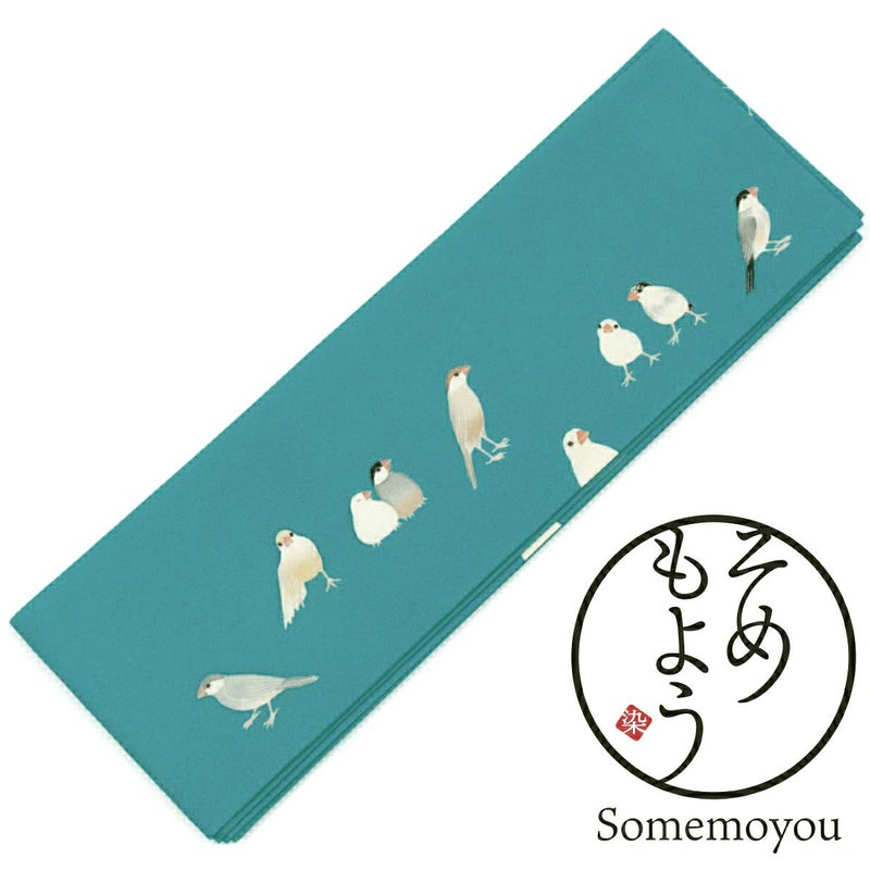 ・文鳥好きさん必見!様々な種類の可愛い文鳥たちのデザイン。 ・浴衣にも普段着物にもコーディネートしやすい半幅帯です。 ・絹によく似た手触りのシルジェリーを使用しました。