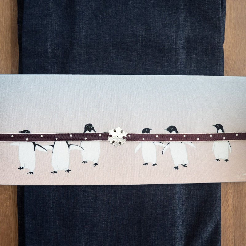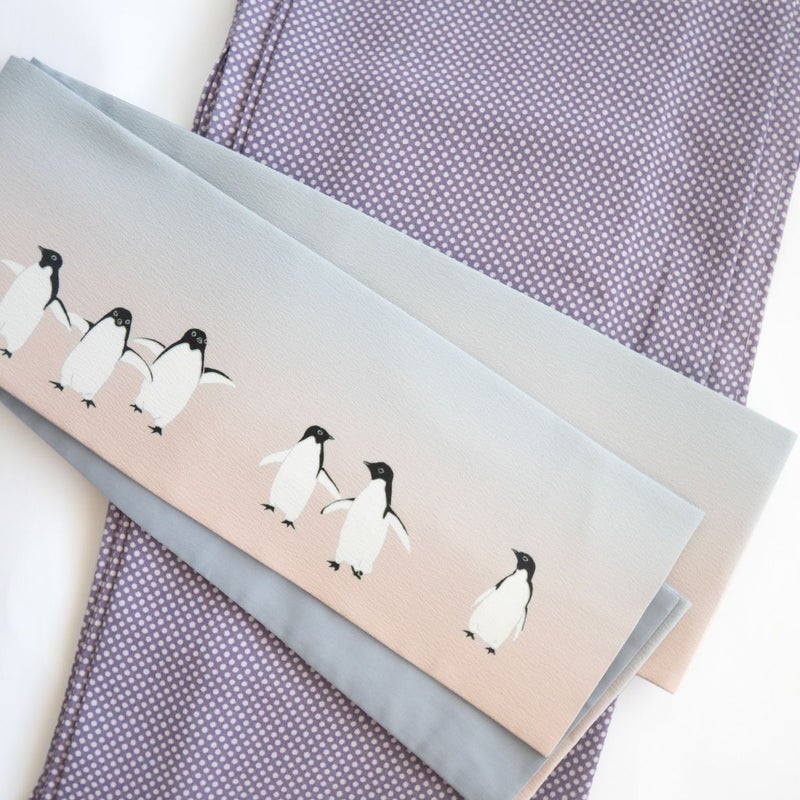 ペンギン好きにはたまらない、癒しの半幅帯です。